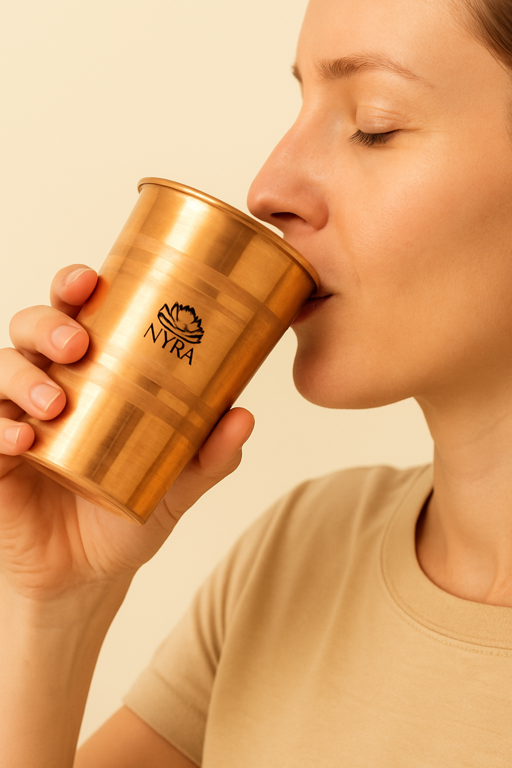 Experience the perfect blend of tradition and wellness with the Nyra® Pure Copper Glass. Crafted from 100% pure copper, this tumbler is not only durable but also rich in health benefits. As per Ayurveda, storing and drinking water from a copper vessel may help improve digestion, enhance immunity, and maintain body balance.