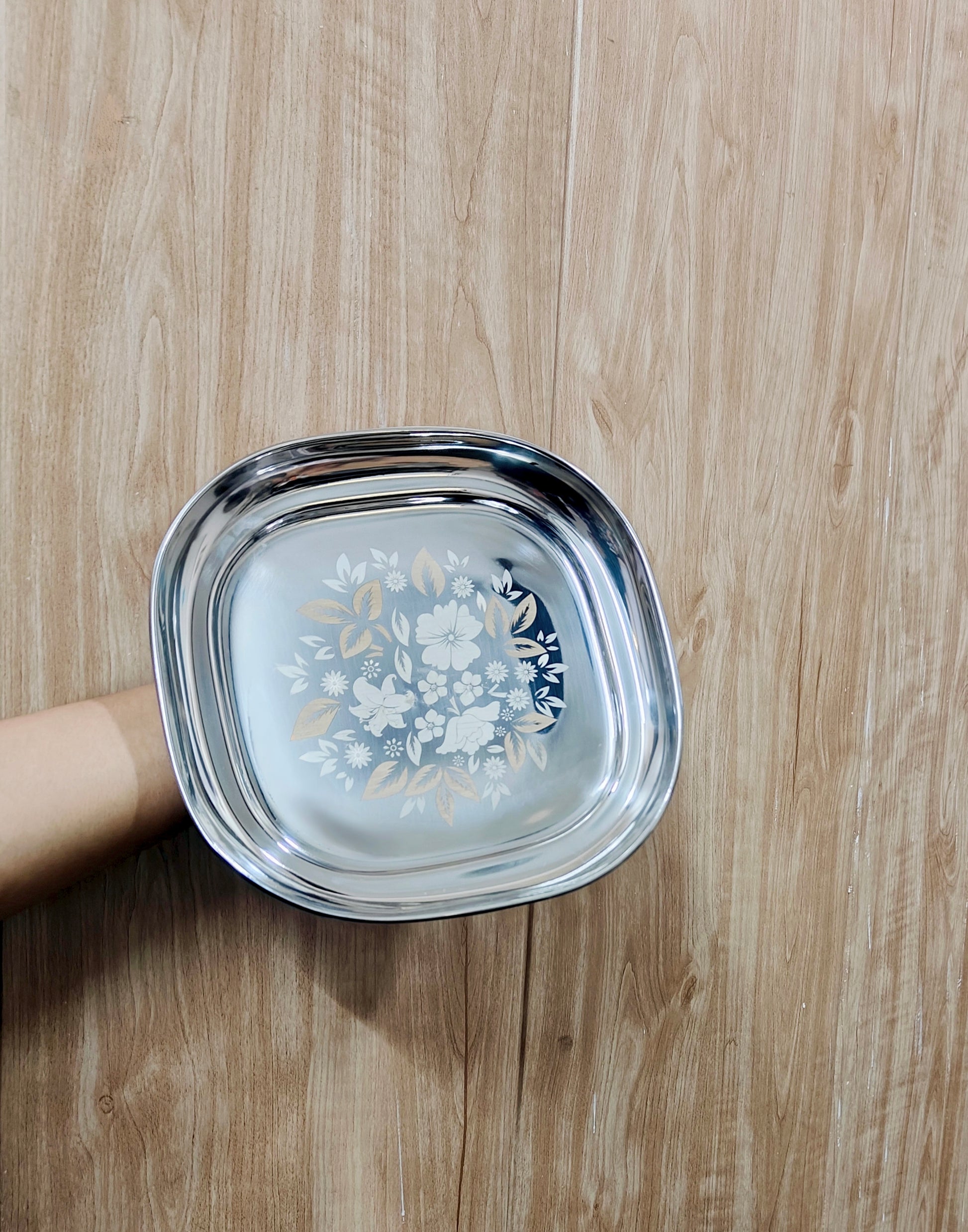 Stainless Steel Set of 12 pieces- Quarter and Full-Size Plates with Laser Print Set for Lunch/Dinner