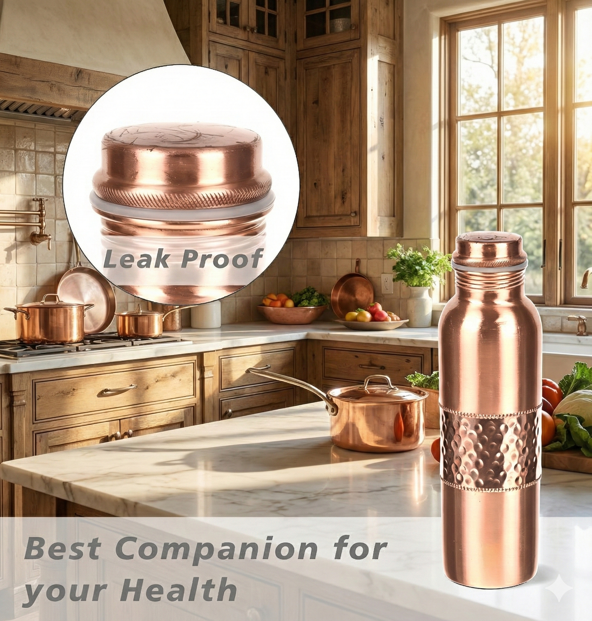 When water rests in a copper vessel for several hours, trace copper ions infuse into it and may help balance the three doshas, support digestion, immunity, and overall wellness as described in Ayurveda. Designed with a wide mouth and a precision-threaded, leakproof cap, this bottle is perfect for bedside use, work desks, yoga studios, or travel, letting you sip copper-enriched water wherever you go.​