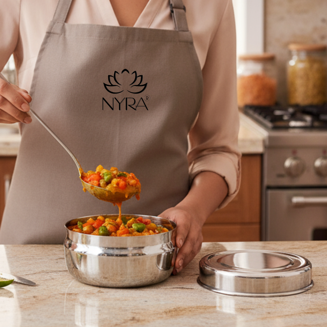Upgrade your kitchen storage with this high-quality Nyra Stainless Steel Round Dibbi, designed for both style and utility. Crafted from durable, food-grade stainless steel, this sleek container is perfect for storing spices, dry fruits, snacks, or small essentials while keeping them fresh and organized. Its compact, round shape fits comfortably in your hand and is ideal for modern kitchens, adding a touch of elegance to your storage solutions. This dibbi is not only functional but also a statement piece for your countertop. Easy to clean, rust-resistant, and built to last, it’s the perfect gifting option for friends, family, or festive occasions.​