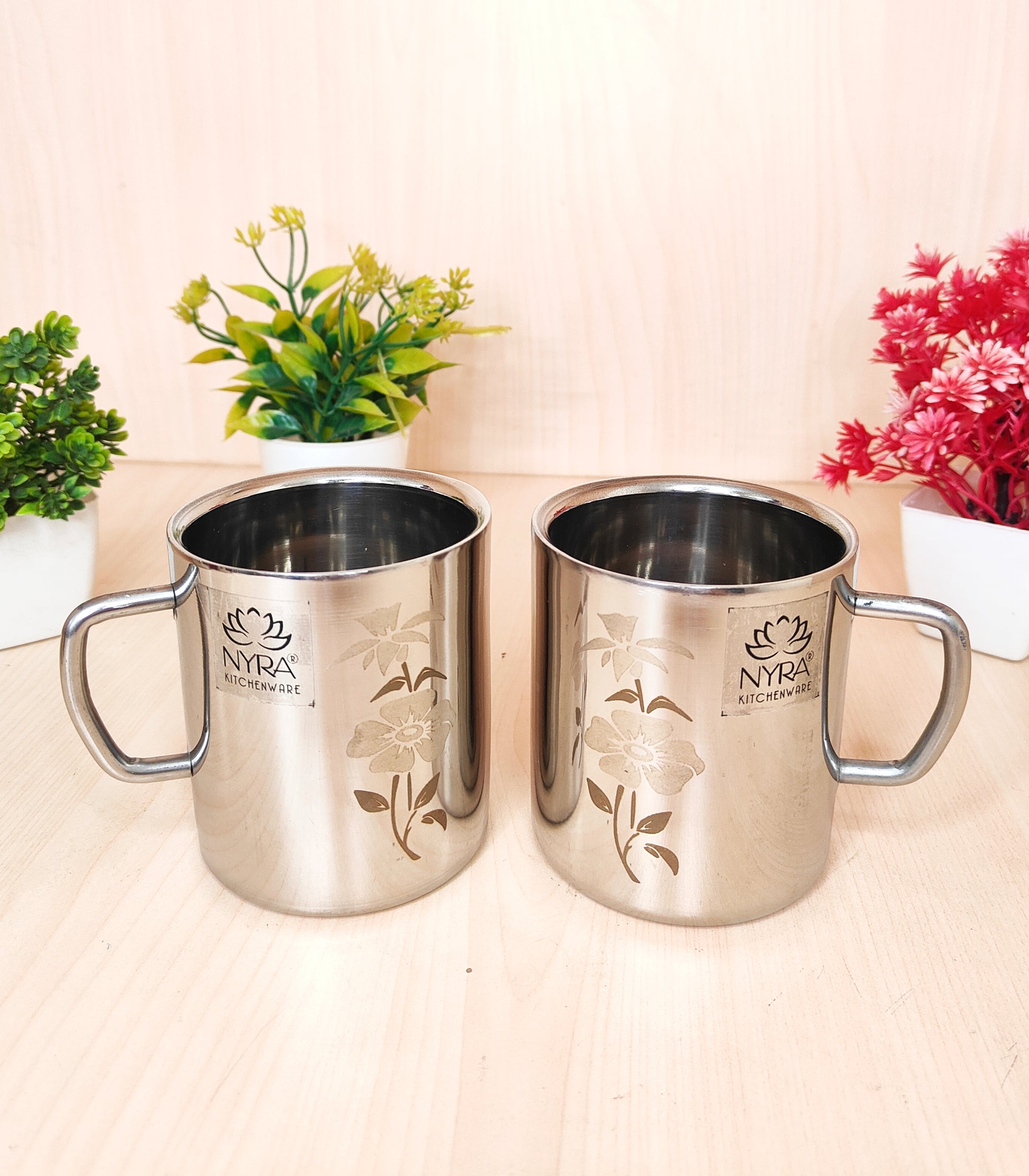 Introducing the NYRA Stainless Steel Laser Printed Mug Set – a perfect fusion of elegance, durability, and practicality. This stunning set of two mugs features a vibrant floral design, bringing a burst of color and charm to your coffee or tea rituals. Crafted from high-quality stainless steel, these mugs are built to withstand daily use while offering long-lasting performance.